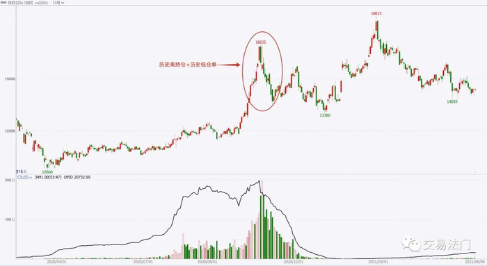 去年的RU01合约,由于疫情影响割胶,再加上老仓单强制注销,所以那个时候的01合约面临的情况是历史低仓单,与此同时,投机资金和游资嗅到了机会,不断在盘面增仓买入,从而形成了历史高持仓。在这种情况下,历史高持仓+历史低仓单的组合下,盘面价格一路上涨,创了近几年以来的新高。