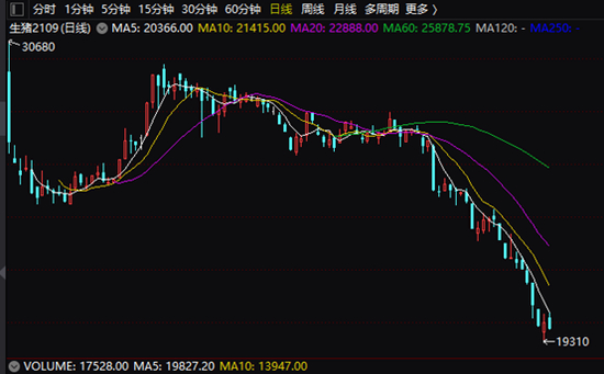 猪肉价格的下跌也反映到了期货市场。行情数据显示,大连商品交易所于今年9月份交割的生猪期货主力合约近期呈跳水式下跌走势,已跌破2000元/吨,折合每斤的报价跌破10元,今年5月份以来该合约最大跌幅已接近30%。