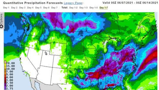 周一晚上豆粕上涨是因为天气展望,至周四雨量都是逐渐增多的。