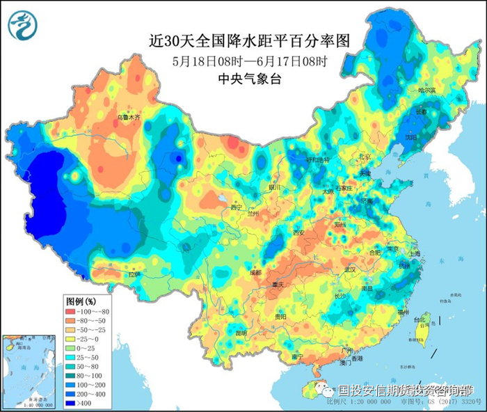 今年6-8月我国东北地区降雨持续偏多,水热条件总体利于农作物生长,但也要防范阶段性低温寡照对作物发育不利;长江流域降水略低于历史同期,今夏水力发电恐难有亮眼表现,看好夏季动力煤需求增长;南方地区梅雨季降水基本正常,但不会长时间出现强降雨天气,不必对相关工业品的淡季需求过分悲观;西北太平洋和南海海域今夏生成的台风个数预计11-12个,较常年(11个)略偏多,台风活动路径以西行和西北行为主,对华东和华南沿海影响较大。