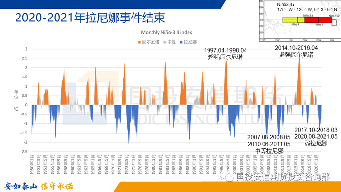 美国气象局、世界气象组织、澳大利亚气象局、中国气象局等专业机构都宣称,此次始于2020年8月的拉尼娜事件已于2021年5月结束。然而,这并非意味着全球极端天气将减少,毕竟大气-海洋的耦合系统非常复杂,延迟响应是非常正常的情况。
