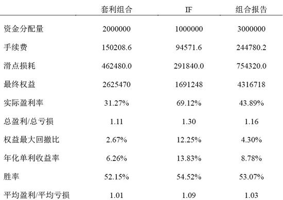 可以看出,正向预期的趋势追踪策略、正向预期的套利策略,根据马科维茨的组合策略原理组合之后形成了一条更好的资金曲线,收益率曲线更加平滑,收益率的斜率更大。从两个单个策略和策略组合的报告可以发现:报告的测试环境要求比较严格,总手续费和滑点占比非常高,占到初始资金数额的30%,而实际的收益率才40%多,在实盘的交易环境中,利用文中提到的交易环境提高交易速度,利用套利两条腿的报撤单办法,减少滑点和瘸腿,理想状态下,可以将滑点数额减小到一个滑点,如果操作较好,实盘中可以在这个报告的基础上多出10%左右的利润,也有可能会更好。