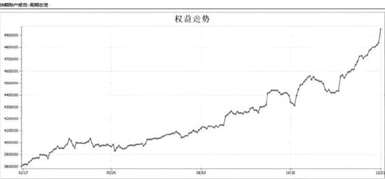 从图6的实盘投资组合资金曲线中可以看出在不到一年的时间里资金从380万元上升到了493万元左右,年化收益达到40%以上,最大回撤在4%左右,年化收益和最大回撤的比值达到了10左右,胜率和盈亏比等其他各项指标变现良好。交易策略在以上的构建组合基础上充分运用了高频交易环境,取得了策略本身的理论收益和高频交易环境所获得的超额收益,加上这段时间的市场活动比较适合这类策略的运行,整体实盘效果达到预期水平,甚至有些超出预期,同时策略在历年的实盘中都表现较好,并且交易策略的实盘结果和私募基金历年的平均水平相比都有一定的竞争力,在实际运行中有一定的可取之处,和其他私募基金的策略也可以进行进一步的组合。