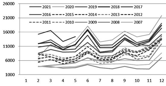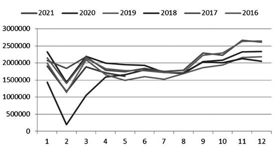 图为商品房销售面积数据变化(2月数据为1—2月累计值)