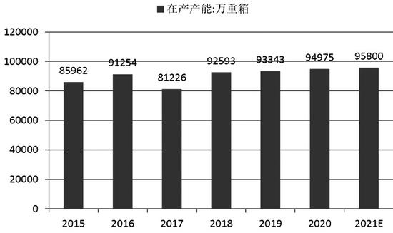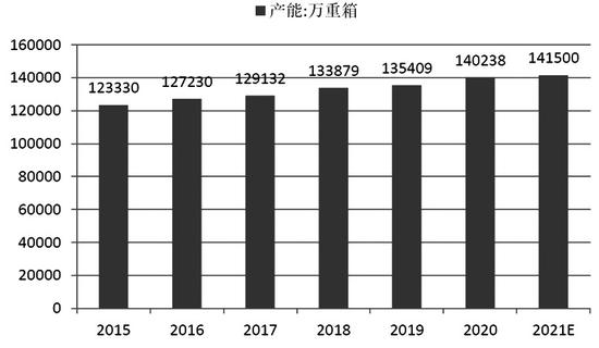 2020年全年浮法玻璃累计新增在产产能4829万重箱,投产时间主要集中在三季度和四季度。预计至2021年年末浮法玻璃总产能为141500万重箱,稳定在全球产能的60%左右。