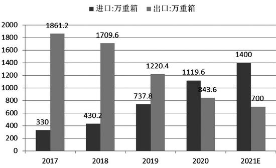国内玻璃需求保持稳定增长,2020年,我国历史性地从玻璃净出口国成为净进口国。2021年,国际国内需求共振,国内价格将更多受国际市场价格波动的影响,输入性通胀压力将在部分时段有所凸显。