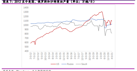 2020 年,新冠肺炎疫情在全球大范围爆发,全世界石油需求锐减,由于 OPEC 成员国沙特无 法与非成员国俄罗斯就石油减产达成一致,沙特决定报复性增加石油开采量,开启“价格战”, 因而引发了 2020 年 3 月油价大幅下跌,同时引发了全球股市暴跌。4 月 12 日,OPEC 与俄罗斯 及其他产油国达成协议,将在 2020 年 5 月和 6 月减产 970 万桶/日原油,7 月至 12 月减产 800 万桶/日,2021 年 1 月至 2022 年 4 月减产 600 万桶/日;并在年底将半年一次会议的惯例改成每 月一次,以便应对油市动荡。2021 年 3 月 4 日,OPEC+部长级会议结果表示除了哈萨克斯坦和俄 罗斯,其他成员国将延长减产计划,沙特将自愿延长 100 万桶/日的减产至 4 月,油价应声而 起,重返疫情前高点。近期 4 月 OPEC+部长会议结束,根据商议结果 OPEC+计划在 5 月、6 月和 7 月分别将石油日产量提高 35 万桶、35 万桶和 44.1 万桶,另外沙特将逐步取消自 1 月以来自愿减产的 100 万桶/日,5 月减少 25 万桶/日,6 月减少 35 万桶/日,7 月减少 40 万桶/日。虽然 此次 OPEC 会议结果没有达到市场此前最乐观的预期,但幅度有限且渐进的增产量显示出各成员 国的态度释放供应仍偏谨慎。