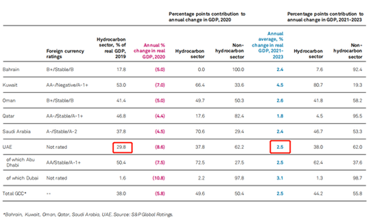 标准普尔全球评级预计海湾合作委员会成员国在 2021 年至 2023 年期间经济将温和复苏,阿联酋经济由阿布扎比(2019年阿联酋 GDP的59%)和迪拜主导(占2019年阿联酋 GDP 的 28%)。 众所周知,阿联酋的石油行业几乎都是阿布扎比在主导,而阿布扎比所依靠的就是ADNOC。 迪拜的旅游和房地产等非石油行业的急剧下降已经严重拖累了2020年的经济表现,后疫情时代之初,阿联酋指望迪拜的旅游房地产振兴经济复苏和带来高速增长是不现实的,ADNOC毫无疑问就是责任担当。