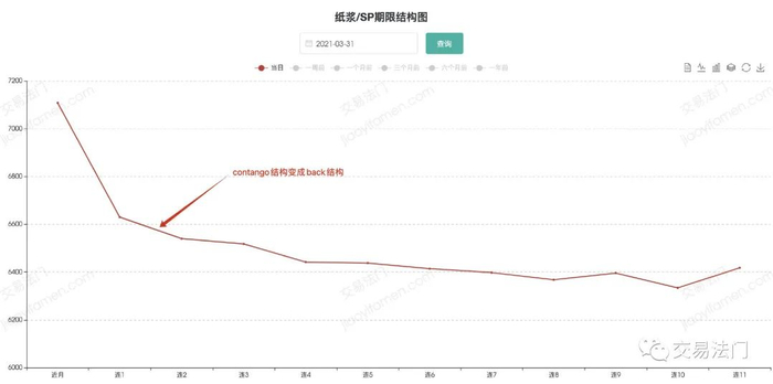 在2021年端午假期前几天,纸浆居然又变成了back结构,我只见过在价格上涨过程中,从contango结构变成back结构的,从没见过在价格下跌过程中contango结构能够跌成back结构的,纸浆让我大开眼界了。