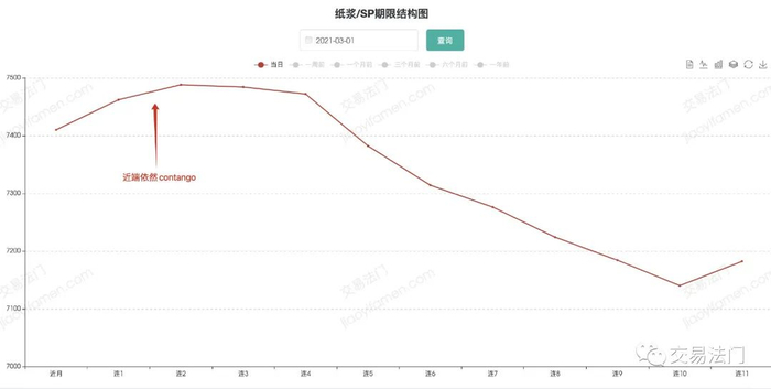 因为back结构本身说明现货供需偏紧,或者更为严格来说,是可交割品供需偏紧,所以导致了标品现货升水于期货,近月期货升水远月,从而体现出back结构。而纸浆这个品种在下跌过程中从back结构短短几天就跌成了contango结构,然后跌着跌着几天又从contango结构变成back结构,简直让人大开眼界。