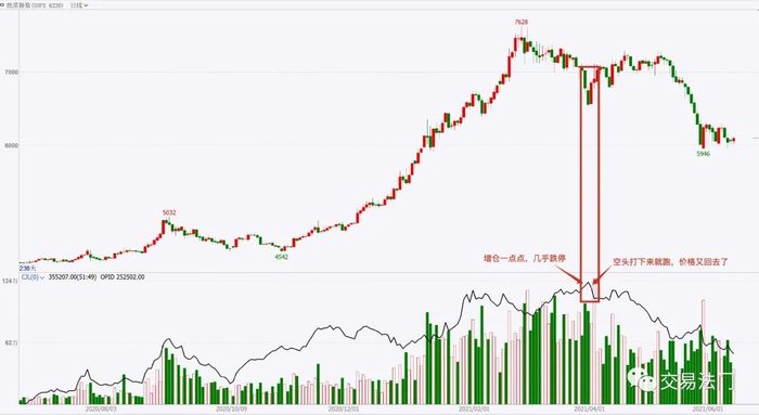 根据我个人这些年的交易经验来讲,当一个品种走出一波流畅的上涨行情之后,多头产生了巨大浮盈,如果盘面增仓往下打,基本上是很难反转的,除非多头自己主动减仓兑现利润离场,否则空头无解,更多的空头增仓进来,往往就是送菜的,这样的情况,我们在很多品种上都遇到过,例如玻璃、pvc、硅铁等等。