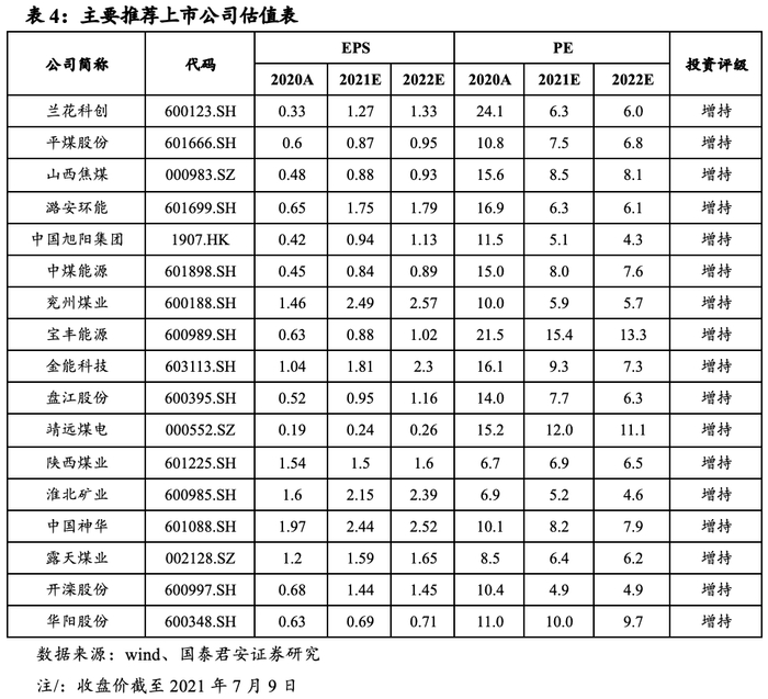 投资建议。1)盈利弹性为王,首推兰花科创、山西焦煤、平煤股份、潞安环能,受益标的晋控煤业;2)强盈利能力的淮北矿业、陕西煤业、中国神华,具备可观绝对收益;3)短期或受制于区域政策等因素,远期具备盈利释放空间的公司,推荐盘江股份、靖远煤电; 4)业务包含大型煤化工的煤炭公司,中煤能源、兖州煤业、中国旭阳集团、宝丰能源、金能科技。