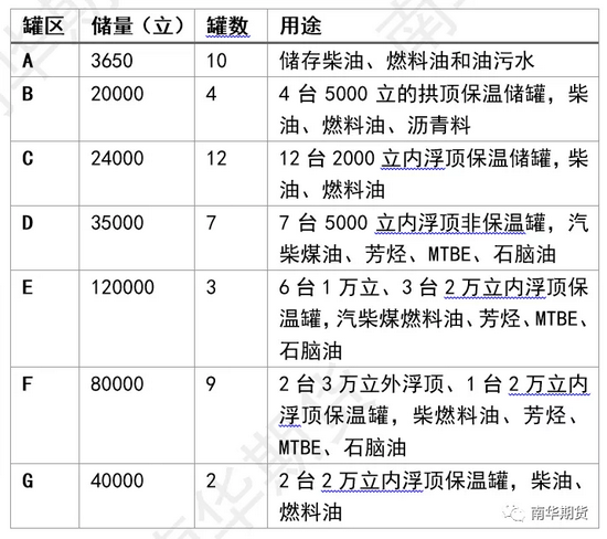 原油存储能力:没有固定库容,全部存储于外浮顶罐,可根据需要与燃料油共用。