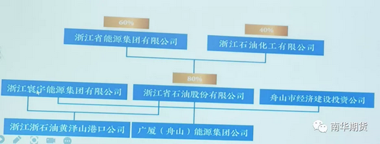 浙江浙石油黄泽山港口公司,注册资本为人民币5亿元,由浙江省石油股份有限公司绝对控股80%、浙江衰宇能源集团有限公司持股19.6%、舟山市经济建设投资公司持股0.4%,隶属于浙江省能源集团有限公司。公司经营范围包括原油、燃料油、成品油中转仓储业务以及石油相关项目的投资开发等。