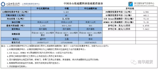 图6 中国舟山低硫燃料油保税船供报价