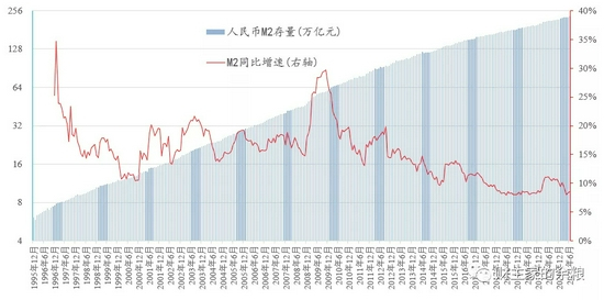 广义货币总量,必然是持续增加的;