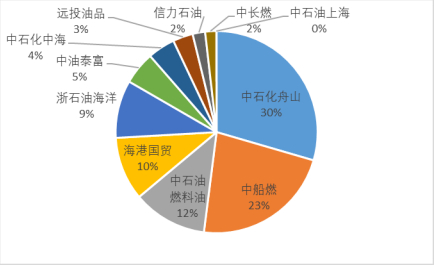 注册资本5亿元人民币,于2017年10月份取得浙江自贸区颁发的供油牌照。公司与油品贸易商Vitol进行保税供油全产业合作,实现港口服务和油品贸易合作。不同于目前大部分供油商只供应低硫燃料油的现状,公司目前依然可以同时供应有高硫和低硫燃料油,也有独立存放高硫燃料油的储罐。