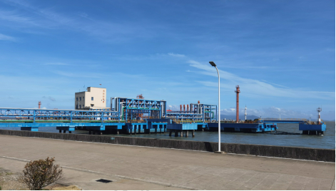 码头:目前共有2座码头:其中12 万吨级码头1座,实际可靠泊13 万吨以内载重吨船舶(码头按照 30 万吨级设计建造,码头总长481米,前沿水深24米,前面有个浅滩,不能再靠更大的船舶,容易搁浅)。装卸油品速率最大为每小时8000立方米。此外还有3000吨级码头1座。