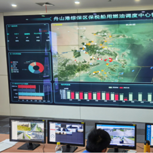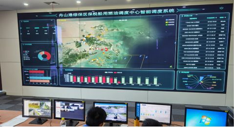舟山港综合保税区管委会是本次调研行程的第一站,通过其调度管理控制平台的介绍,可以最直观便捷地了解到整个舟山港综合保税区附近海域的保税船燃加注作业的各个流程。