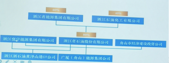 浙江浙石油黄泽山港口公司,注册资本为人民币5亿元,由浙江省石油股份有限公司绝对控股80%、浙江衰宇能源集团有限公司持股19.6%、舟山市经济建设投资公司持股0.4%,隶属于浙江省能源集团有限公司。公司经营范围包括原油、燃料油、成品油中转仓储业务以及石油相关项目的投资开发等。