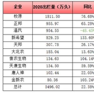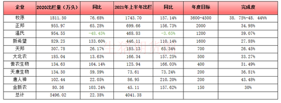 10大上市猪企2021年上半年出栏
