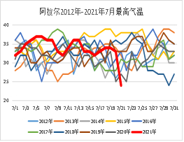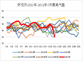 7月14日,市场广泛流传高温引起新疆产区红枣发生落枣现象,可能会影响当年产量,作为最大的红枣产区新疆产区,红枣存在不同程度的落枣现象。但是中国天气预报网数据显示,作为主产区的阿克苏、阿拉尔和麦盖提气温并没有特别高,高温直接导致减产的推断存在一定问题。