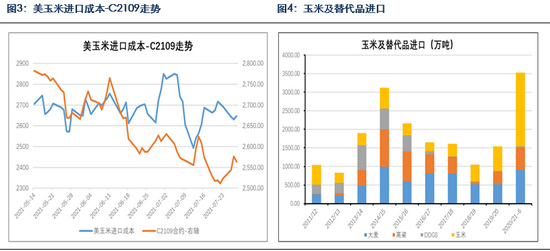 进口谷物方面,玉米及替代品累积进口3532万吨,同比增加2490万吨,同比增幅达2.4倍,本年度截至目前累积进口玉米1992万吨,同比增加1534万吨,同比增加3.3倍,进口谷物及替代品中玉米占比56%,今年进口的增量主要来自于玉米。目前广东部分贸易商进口高粱报价2530-2550元/吨,乌麦报价2330元/吨,法麦报价2350元/吨,较广东目前2710元/吨的价格仍有一定的性价比,使得大麦和高粱的进口量继续维持高位,南港进口谷物库存居高不下,减弱了对东北玉米的需求。