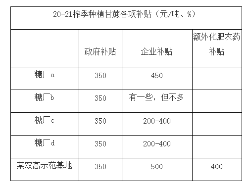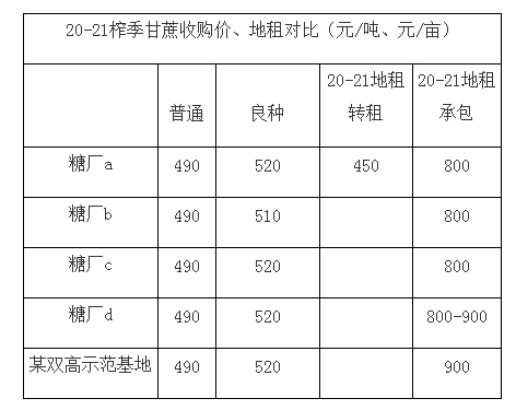 从调研的结果看,新榨季各糖厂单产都面临不同程度的变化,具体分析如下:b糖厂单产减少原因:一是上榨季收榨较晚,加上2021年初持续的不下雨,造成农民开始种植时间较往年推迟了一个月;二是新植甘蔗出苗期遭遇持续的干旱影响了蔗苗的生长进度。d糖厂:预计新榨季会有所恢复,最近迎来下雨利好甘蔗生长,比去年长势略好。双高基地:2020-21榨季单产低的原因:一是种植期遭遇了干旱,种植晚了;二是有新接收的3000亩宿根地,质量没有保证,单产比较低。2021-21榨季将种植提前了,避免遭遇上榨季的情况,目前株数达5000多,多于去年;株高也高于去年同期20公分,预计今年的单产能增加0.8吨左右。