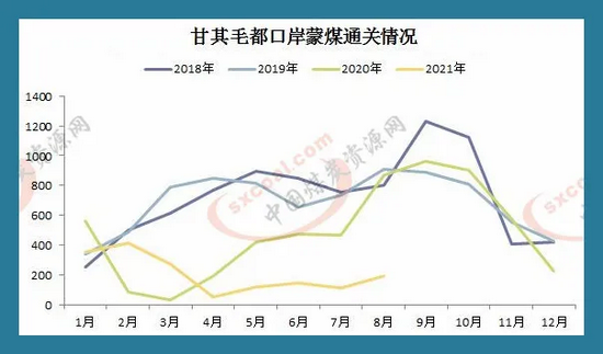 中国煤炭资源网数据显示,截止到5日,8月份甘其毛都口岸蒙煤通关日均192车左右,相较7月份的日均通关车数109车大幅增加。不过与去年同期866车水平相比仍存巨大差距。