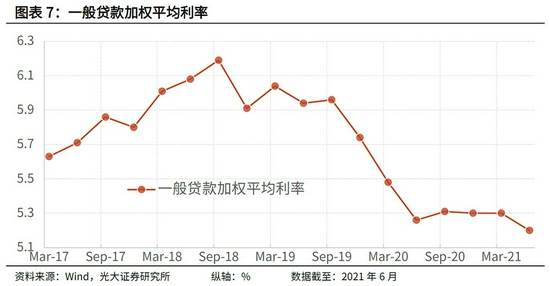 例如,自2019年6月至今年6月这2年时间内,MLF利率降低了35bp,加点幅度下降了11bp,一般贷款加权平均利率与LPR之间的利差降了28bp。也就是说,贷款实际利率的下降有约4成由利差的降低所贡献。(注:LPR下降的幅度高于MLF利率,实际贷款利率下降的幅度高于LPR,这体现出货币政策向贷款市场的传导是高效的。)