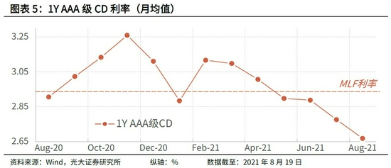 从另一个角度讲,前期一系列压降银行负债成本的政策给降低贷款实际利率提供了空间。比如说:存款利率自律上限确定方式改为在存款基准利率上加点确定,并于6月21日正式实施;结构性存款规模持续压降,中资全国性银行6月末余额为6.04万亿元,已较去年同期大幅压降了44.2%;7月初降准释放出长期资金约1万亿元,降低金融机构资金成本每年约130亿元;降准后央行仍在充分满足金融机构的资金需求,并通过OMO和MLF提供短期和中期资金;8月初至19日DR007利率和1Y AAA级CD利率的均值分别降至2.08%和2.67%,均略低于相应期限的政策利率。针对银行资产端的政策也增加了银行降低贷款实际利率的“压力”。例如人民银行将LPR运用情况纳入MPA考核,推动明示贷款年化利率,引导银行将LPR嵌入FTP,增强LPR在金融机构内外部定价中的基准作用。