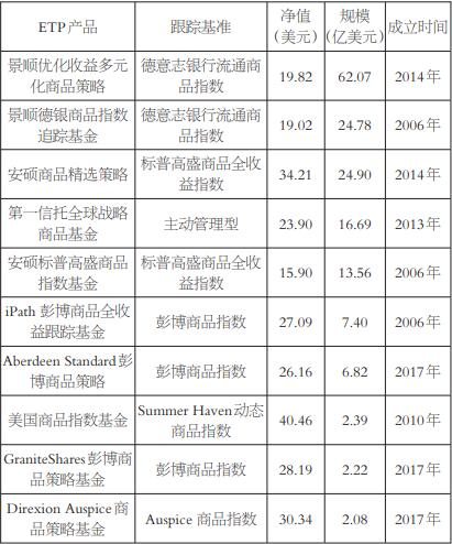表为全球前十商品ETP综合类产品详情
