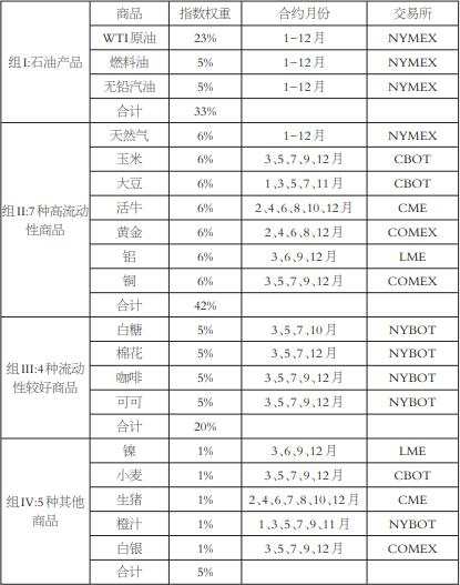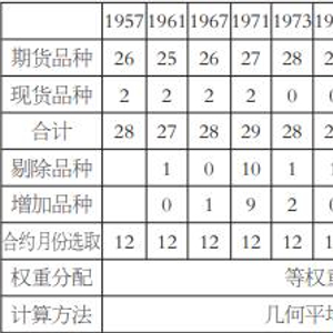 表为路透CRB指数各品种权重及主力合约月份