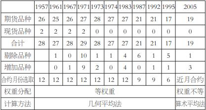 表为路透CRB指数历次调整