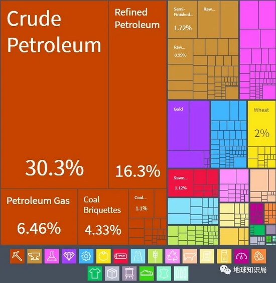 (2019年俄罗斯出口结构,图:OEC)▼