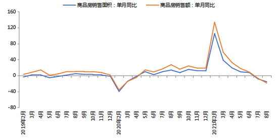 图8 8月楼市销售端连续两个月出现同比负增长,政策调控压力显现(%)