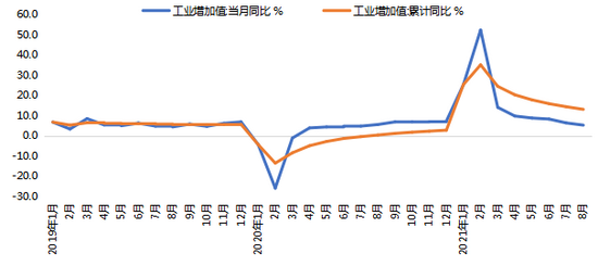 事件:2021年8月规模以上工业增加值同比实际增长5.3%,前值6.4%;1-8月固定资产投资累计同比增长8.9%,1-7月为10.3%;8月社会消费品零售总额同比增长2.5%,前值8.5%。