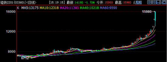 截至23日收盘,锰硅期货主力合约今年以来累计上涨75.59%,硅铁期货主力合约上涨118.32%。同期,现货价格也大幅上涨。23日,硅铁期货大涨11%,以涨停价收盘。而据百川盈孚消息,当日72#硅铁市场价格为18000-21000元/吨,远高于期货主力合约14444元/吨的价格。