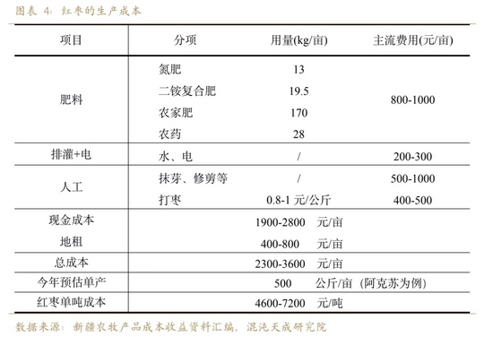 1、红枣的生产成本