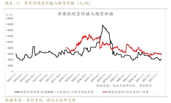 以2018-2019年度苹果现货价格和期货价格的对比,我们发现可以分为三个阶段: