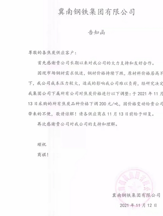 “目前,焦煤总库存连续2个月缓慢累库,近期累库速度有所加速,特别是煤矿端库存,说明焦煤的供需基本面已经大幅好转。焦煤价格大幅走低,特别是蒙5#精煤12日一天下跌了600元/吨,市场对焦炭有进一步提降的预期。”中信建投期货黑色系高级研究员赵永均说。
