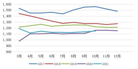 与9月底相比,328棉花价格指数上涨3580元/吨,涨幅18.75%;C32S纱线价格指数上涨3050元/吨,涨幅11.38%;32支纯棉斜纹布价格指数涨0.41元/米,涨幅仅有6.67%。从上下游价格涨幅来看,上游涨幅大、下游涨幅小,价格向下传导不畅现象较为明显,这就导致纺企加工利润压缩甚至亏损。从现实情况来看,籽棉上市期间轧花厂抢收,虽然也有轧花厂和棉农关于籽棉价格的博弈情况发生但基本上不存在因价格而“冷场”的局面发生纺织端来看,因原材料涨价纱线跟涨,不过因为下游需求一般、供大于求,纱线大幅涨价难以被下游接受,这就导致纱线涨价较为困难且产成品库存越来越多。