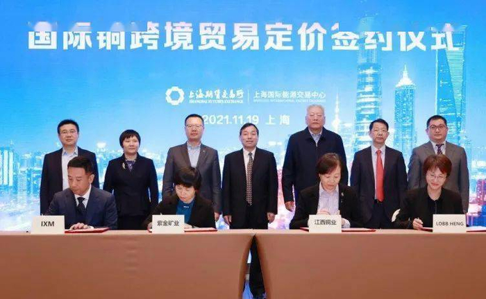 上周五,上海国际能源交易中心(下称“上期能源”)国际铜期货上市一周年之际,江西铜业股份有限公司、紫金矿业集团股份有限公司、埃珂森(IXM)、新加坡泺亨实业有限公司(LOBB HENG PTE LTD)等境内外企业,在上海签署了合作协议书,约定在电解铜和铜精矿跨境贸易中,使用以人民币计价的国际铜期货价格作为合同计价和结算的基准。同期,上期能源举办了国际铜期货上市一周年市场座谈会。