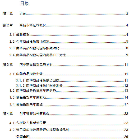 南华商品指数由南华研究所创立,从2004年6月1日编制起始,截至2021年12月,已经走过了近17年多的历程,记录了中国大宗商品市场的跌宕起伏。由于南华商品指数编制的合理性、稳定性以及强代表性特点,使其成为研究中国大宗商品价格走势的有力指标,被证券业、基金业和期货业众多知名学者和专家广泛使用。