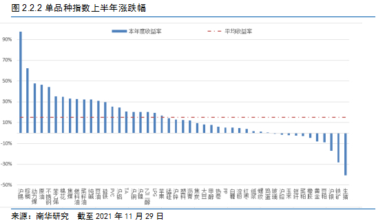 从板块上看,南华能化板块今年表现最强,尽管后期价格大幅回调,但在“双碳”约束之下,下滑空间不宜看得太低。南华金属板块跟随宏观经济波动,未来刺激政策收缩,宏观经济走弱是大概率事件,南华金属指数可能承压。农产品板块继续分化,关注结构化行情。