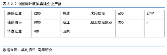 生活用纸投资计划有:金红叶如东项目78 万t/a,理文造纸100 万t/a,南通王子24万t/a,福建联盛 12万t/a,广西太阳15万t/a,中顺洁柔30万t/a(浆 +生活用纸)。