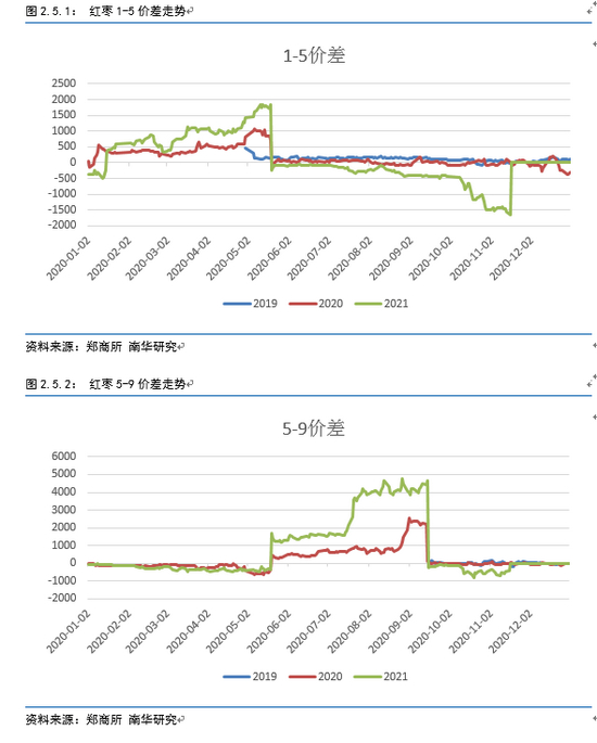对于红枣而言,2021年红枣经历沉底后暴涨的走势,主要因新季红枣种植面积下降以及天气导致的单产下降造成的减产影响。展望2022年,红枣市场的供应端已经确定,因此下方支撑点就是仓单成本,上方空间则取决于全年的消费情况,由于红枣是非必需品,如若后续消费不买账,后续红枣的上涨空间恐会较为有限。价差看,买近抛远的策略比较合适,建议5-9正套操作。