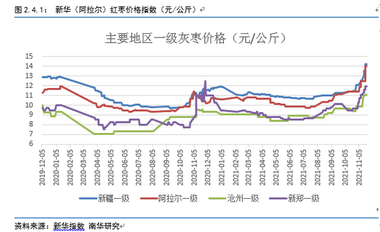 红枣种植面积从2018年开始持续下降,红枣今年是个非常特殊的年份,红枣从极度过剩转换到供应紧张仅用了短短几个月的时间。20/21年度我国枣树的种植面积大幅下降,同时受到天气影响,整体出现了较为明显的减产,红枣今年的收购价也出现较大的上涨。