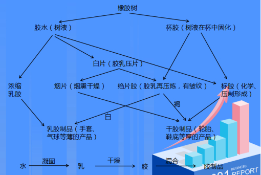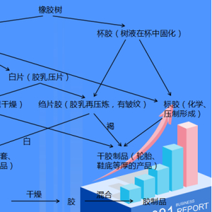 橡胶生产经历了“水乳交融”的阶段,先是割胶,从橡胶树上收集胶水,再经过凝固、压缩,形成胶乳,再经过各种干燥、压制,形成橡胶,添加入各种化学品进行“融合”,生产出不同功能的橡胶制品。