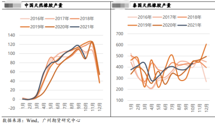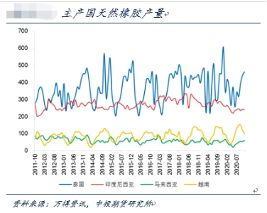 泰国:橡胶处于高产阶段。由于洪涝、台风等天气因素,预计今年减产4%,明年产量变动不大或有小幅修复。